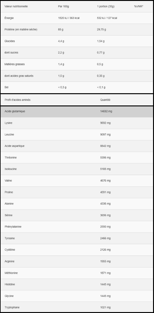 يحتوي على نسبة عالية من الأحماض الأمينية الأساسية وBCAA التي تساهم في تعزيز تخليق البروتين العضلي وتحسين الأداء الرياضي. سهل الذوبان، خفيف على المعدة، ومناسب للاستخدام اليومي للرياضيين.
