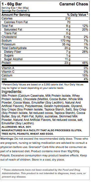 إن وجود وجبات خفيفة تحتوي على البروتين يعد ثورة في عالم المكملات الرياضية والاكل الصحي. لا داعي للحرج بعد اليوم، لمجرد أنك تعيش حياة صحية فان ذلك لا يعني بالضرورة بأنك لا تستطيع تناول الوجبات الخفيفة، لا سيما وان هذا البروتين بار من Grenade Carb Killa يحتوي على مواد غذائية تعد جزء أساسي من طعامك الصحي ونمط حياتك الرياضي.