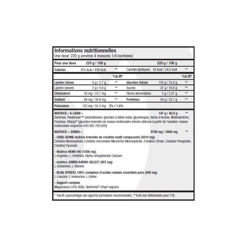 جومبو هو مكمل الضخامة الأنسب لمن يبحث عن زيادة الوزن وبناء العضلات بشكل فعال، وهو مخصص للناس التي تجد صعوبة في كسب الوزن والأشخاص الذين يعانون من شهية ضعيفة للأكل ويصعب عليهم توفير جميع حاجيات الجسم من السعرات الحرارية التي يتطلبها خلال مرحلة التضخيم.