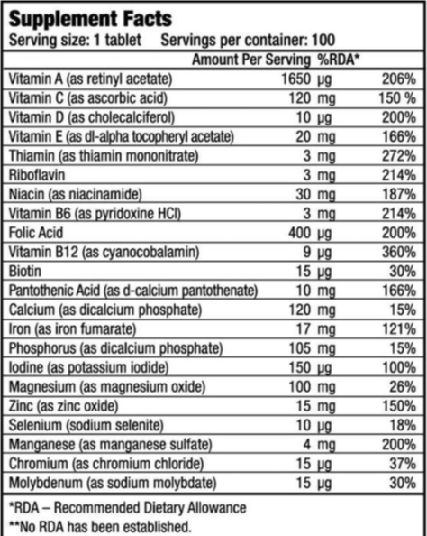 One a day multivitamine contient de l'acide pantothénique et du Ginkgo Biloba, qui aident à maintenir un esprit actif, ainsi que du zinc, qui contribue au maintien d'une santé osseuse normale. Les vitamines B6 et B12 contribuent également à produire de l’énergie dans le corps.