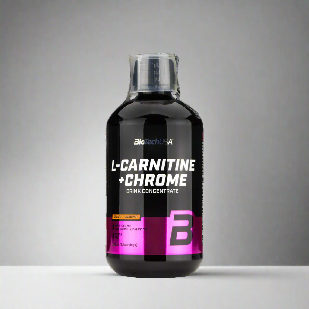 L-Carnitine+Chrome 500ml مكمل سائل عالي الامتصاص مصمم لدعم إنتاج الطاقة وتسريع معدل حرق الدهون، مع إضافة معدن الكروم الذي يساهم في: