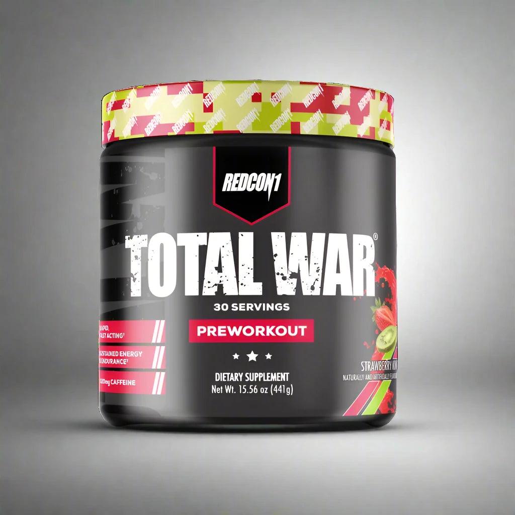 Êtes-vous à la recherche d’un puissant complément pré-entraînement pour faire passer vos séances d’entraînement au niveau supérieur ? Essayez la formule pré-entraînement la plus vendue de REDCON1 ! TOTAL WAR est une poudre de pré-entraînement tout-en-un qui contient un puissant mélange d'ingrédients d'endurance, de pompe, d'énergie et de concentration. Avec 320 mg de caféine, 3,2 g de bêta-alanine et 6 g de citrulline malate au cœur de la formule, chaque dose de TOTAL WAR regorge d'ingrédients cliniquement étudiés à des niveaux efficaces afin que vous puissiez vous entraîner à un niveau élite à chaque fois. De la première mesure de notre poudre pré-entraînement à la dernière, vous remarquerez une énergie intense et une concentration  dans chaque portion. De plus, vous ressentirez une force, une puissance et des pompes accrues qui vous permettront de soulever plus de poids et d'effectuer plus de répétitions. Il y a une raison pour laquelle la formule n’a jamais été modifiée : elle est trop bonne. TOTAL WAR est à la hauteur à chaque fois pour que vous puissiez vous entraîner intensément et atteindre le plus haut état d'énergie et d'endurance.